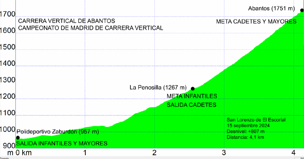 - Categoría Infantil: Salida en el Polideportivo Zaburdón, recorrido de 2,50 km con 310 metros positivos. Meta en la Penosilla.